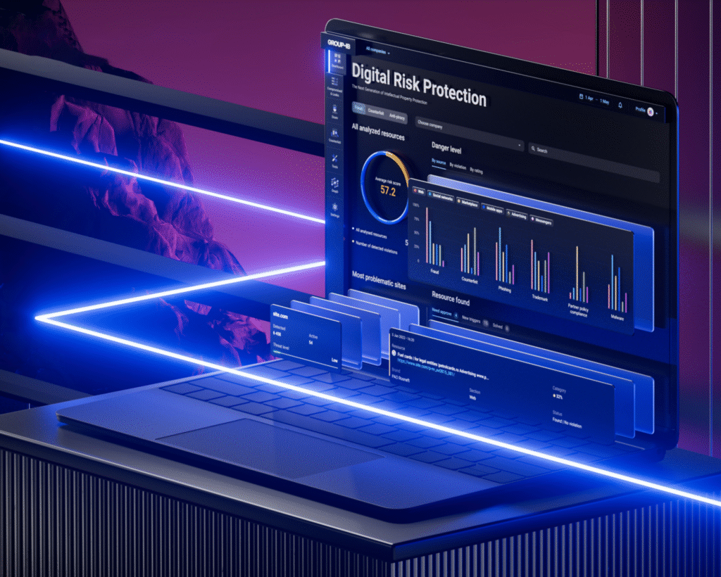 Our Digital Risk Protection solution is an all-in-one platform that uses the benefits of machine learning and neural networks to automatically monitor a company’s digital footprint, detect violations, prioritize and initiate appropriate takedown tactics. The solution offers full-fledged protection against risks that lie beyond the company’s perimeter, including but not limited to phishing, scams, piracy, and data leaks, fake partnership, fake mobile apps.